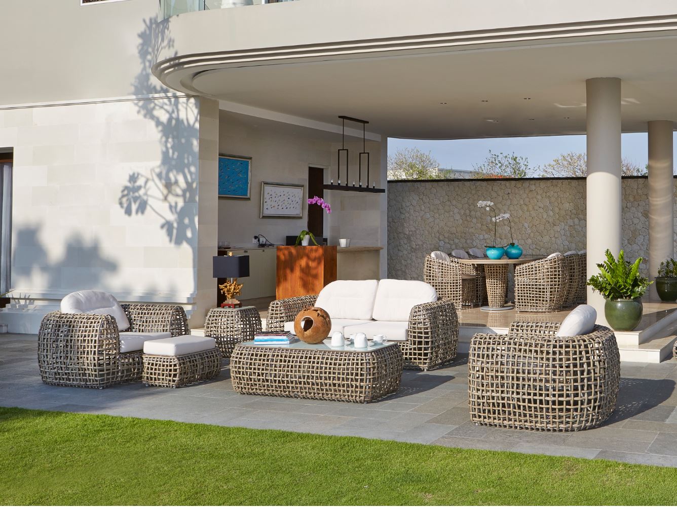 The Dynasty 5-Piece Seating Set is a perfect blend of modern luxury and durable craftsmanship. Designed for high-end outdoor living spaces, this set features a commercial-quality extruded aluminum frame wrapped in premium synthetic fibers for superior weather resistance. The Sunbrella cushions provide exceptional comfort and durability, ensuring long-lasting enjoyment in any environment. The contemporary open-weave design adds a sophisticated touch, making it ideal for patios, poolsides, and upscale resorts.