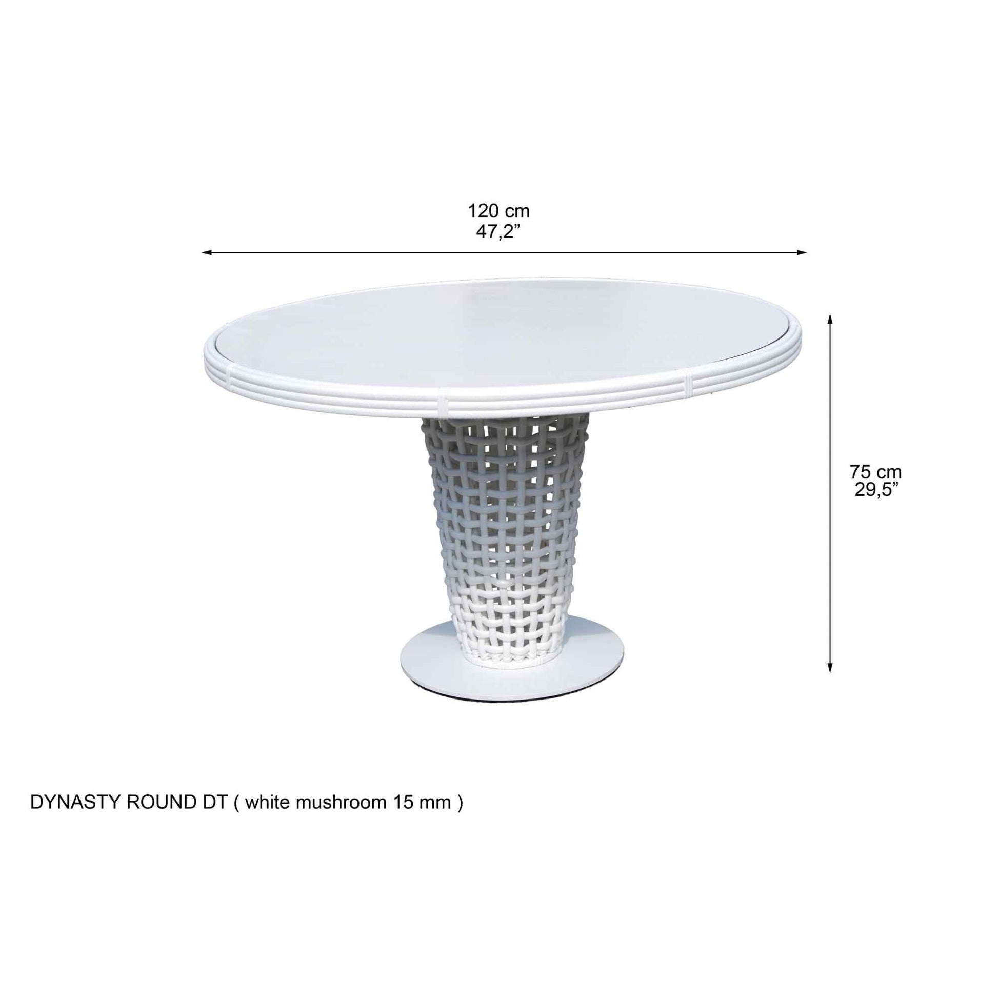 The Dynasty 5-Piece Dining Set with Sunbrella Cushion offers a luxurious and sophisticated dining experience for outdoor spaces. Crafted with a commercial-grade extruded aluminum frame, the set is wrapped in premium synthetic outdoor fibers for superior durability. The dining chairs feature plush, weather-resistant Sunbrella cushions, ensuring year-round comfort and elegance. Available in three timeless finishes—Kubu Mushroom, Black Mushroom, and White Mushroom—this dining set complements a variety of outdoor aesthetics, making it ideal for both residential patios and upscale commercial settings.