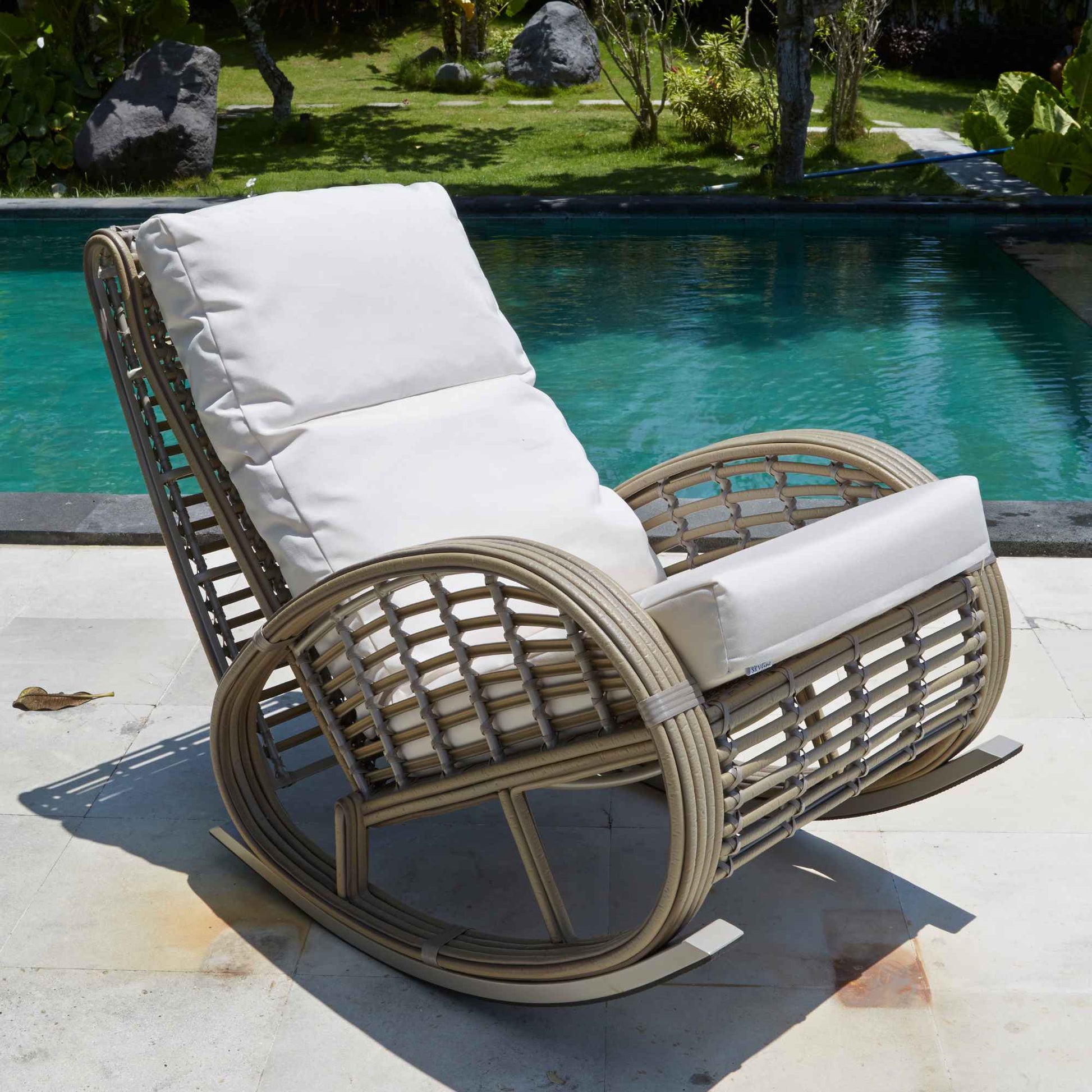 The Dynasty Rocker brings a sophisticated touch to any outdoor space, combining contemporary design with timeless comfort. Constructed with a durable extruded aluminum frame wrapped in premium synthetic outdoor fibers, this rocker is built to withstand the elements year-round. Its gently curved frame and plush Sunbrella fabric cushions provide the perfect blend of support and relaxation, making it ideal for lounging in style. Available in Kubu Mushroom, Black Mushroom, and White Mushroom finishes, the Dynasty Rocker is a versatile addition to both residential and commercial outdoor settings.