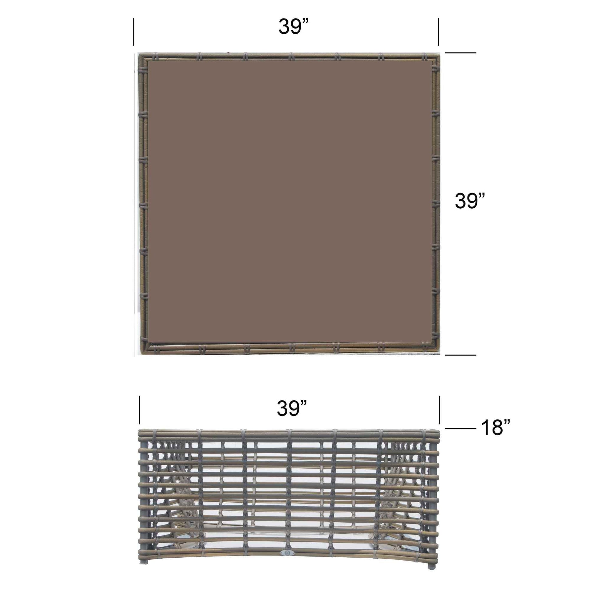 The Ruby Coffee Table brings a sophisticated, airy feel to any outdoor setting. Crafted with a sturdy aluminum frame in a silver walnut finish, it features an open-weave design with handwoven Ecolene Kubu Mushroom synthetic fibers. A tempered glass top adds functionality while enhancing its elegant appeal, making it the perfect centerpiece for patios and lounges.