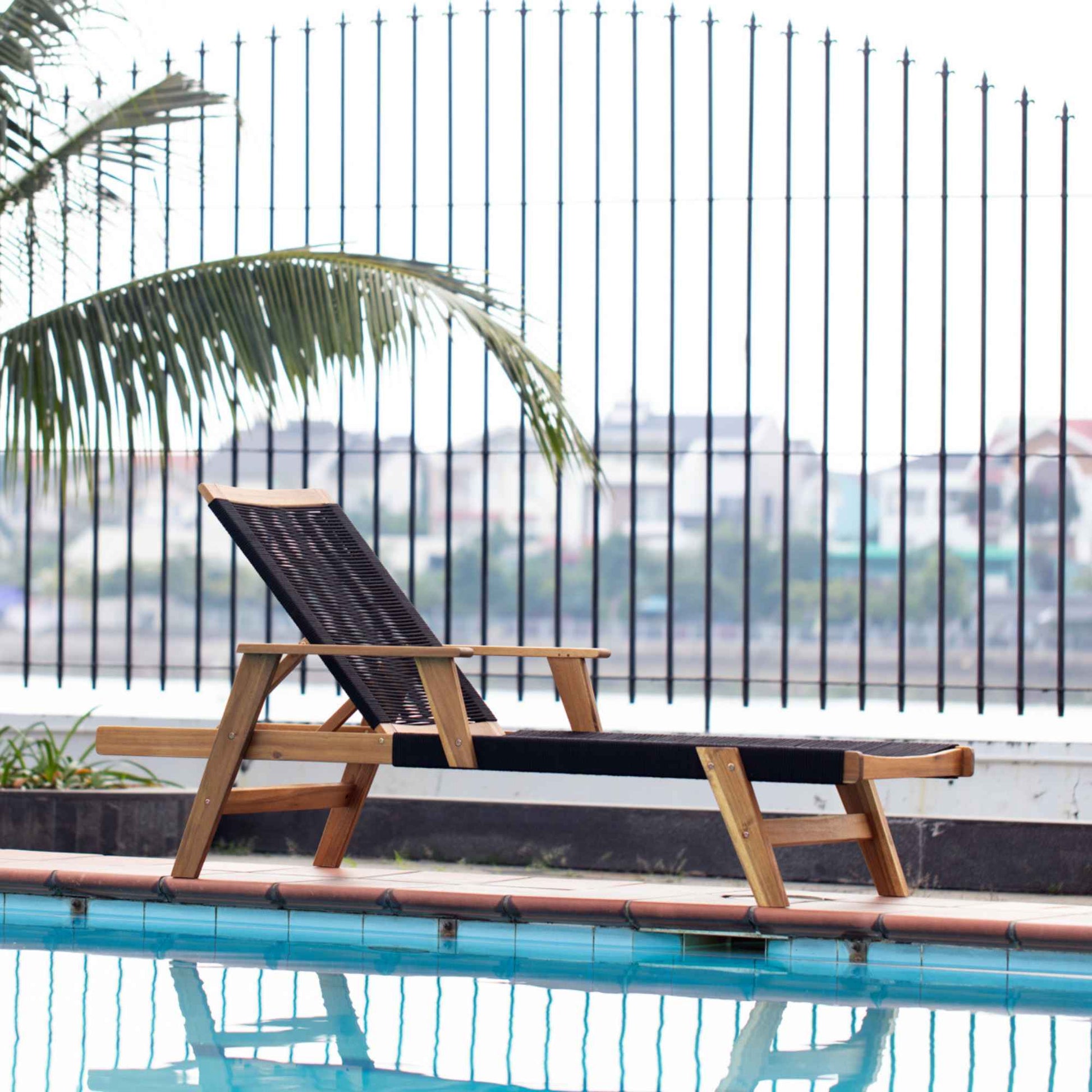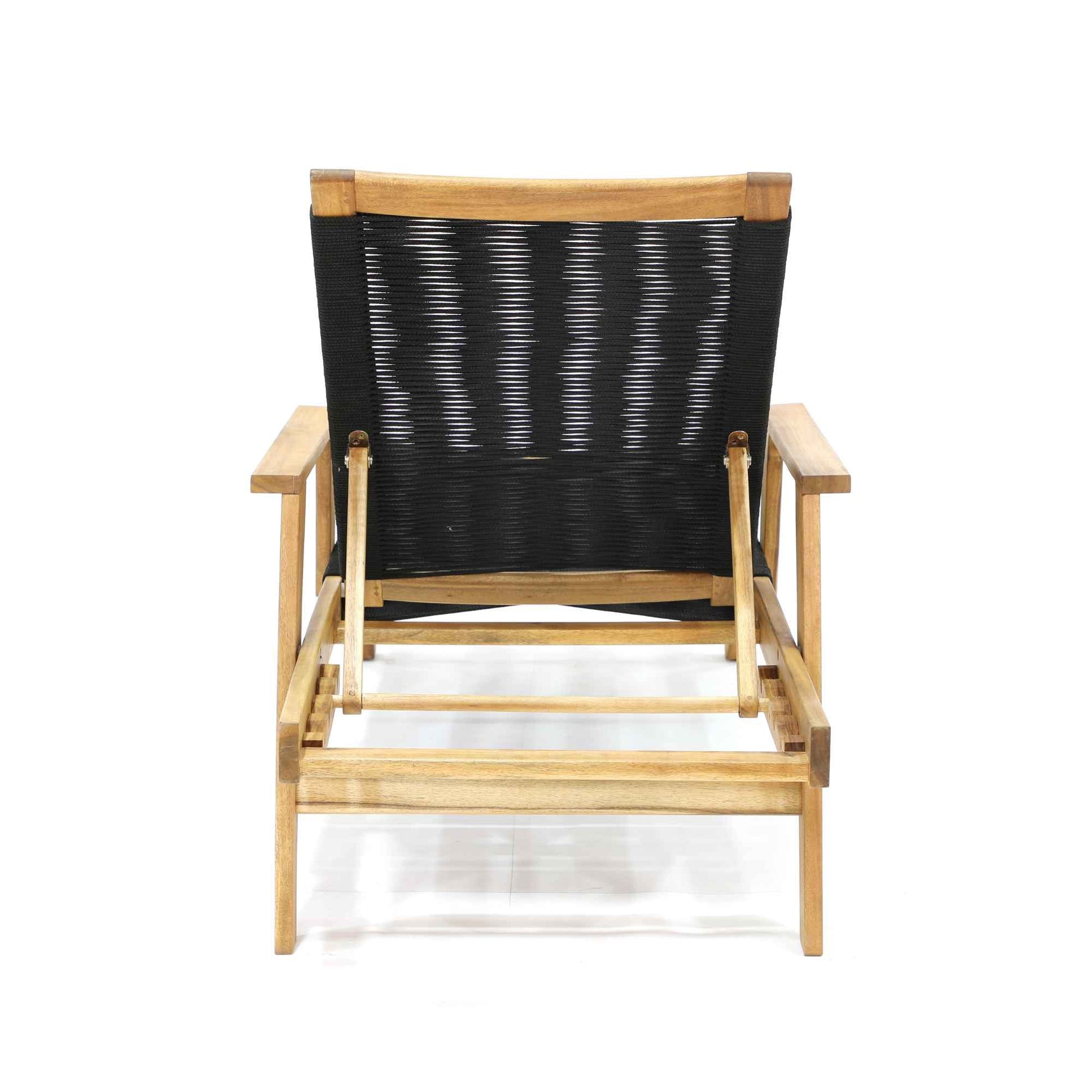 Transform your outdoor space into a relaxing oasis with the Panama Jack Laguna chaise lounge, crafted from solid Acacia wood in a honey-hued finish. Ideal for patios, balconies, or poolside areas, this lounger provides the perfect spot to unwind and enjoy your favorite book or cocktail. The modern black cording seat and backrest are designed to dry quickly, making it effortless to maintain. Combine this elegantly designed lounger with other pieces from the collection to create a cohesive and comfortable outdoor oasis. Keep the original golden teak color of the chaise lounge by lightly sanding and applying teak oil every few months.