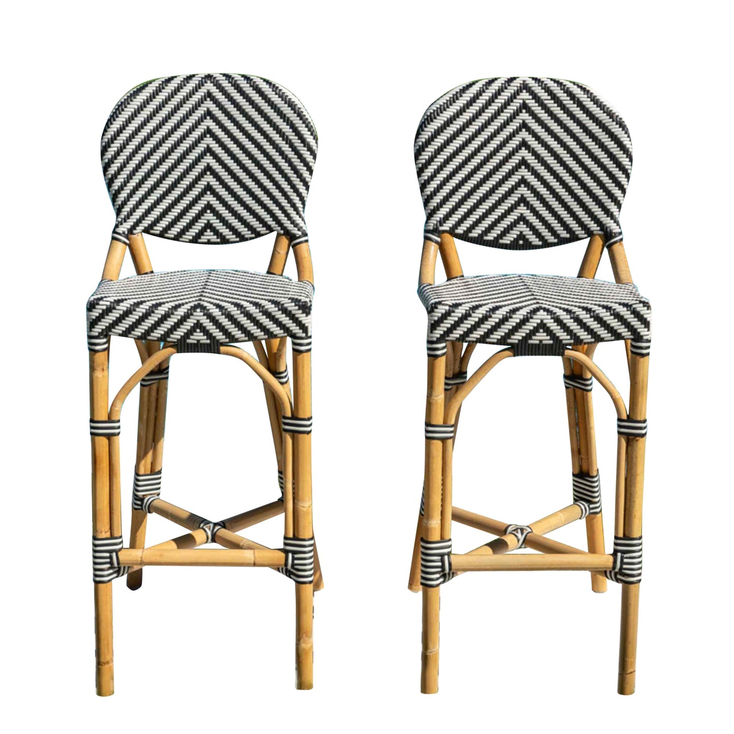 Natural rattan frame with eye-catching black-and-white synthetic weave