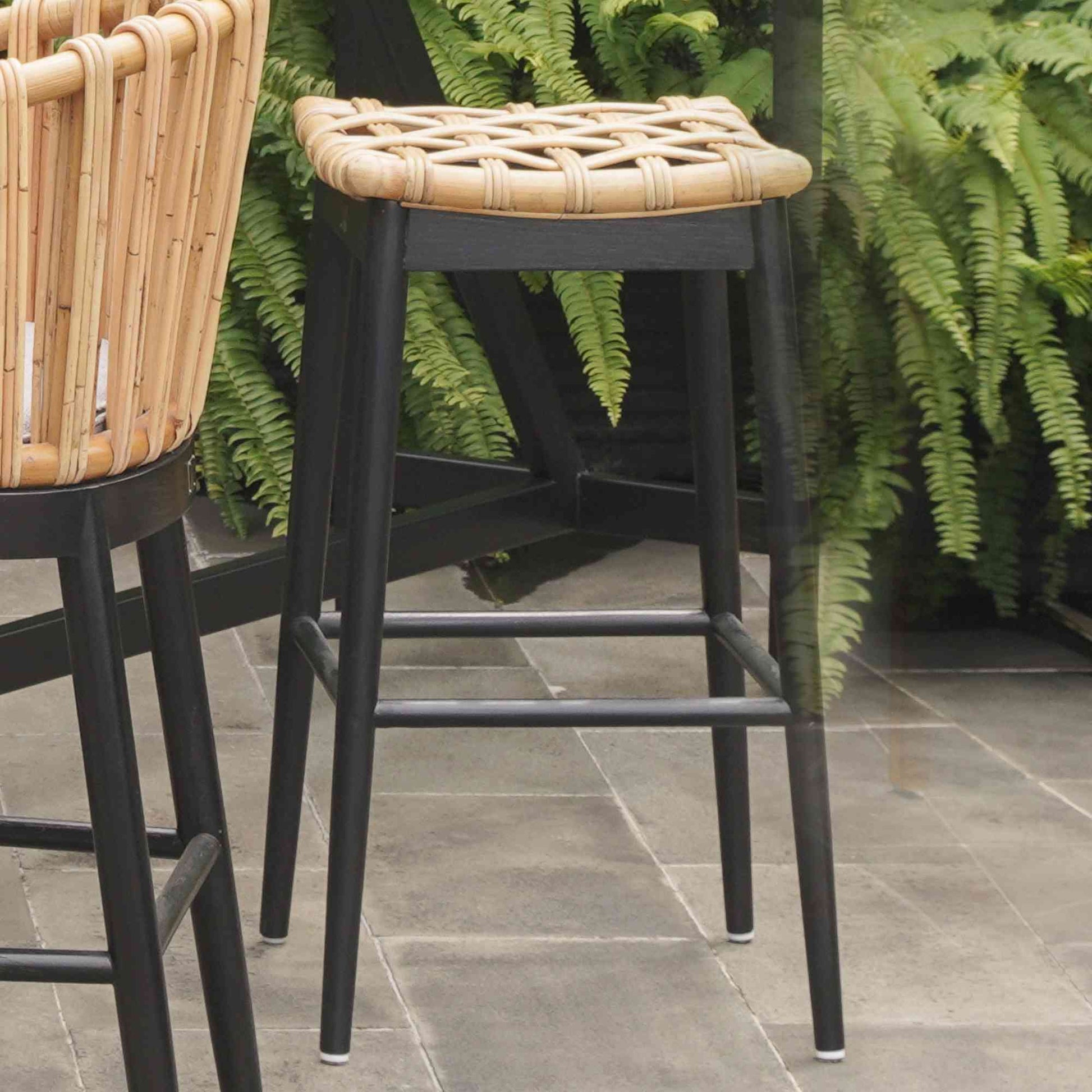 Enhance your bar or kitchen area with the Panama Jack Java Backless Barstool, designed to deliver style and practicality. Featuring a sturdy black wood frame with natural pencil rattan details, these barstools exude a timeless and versatile appeal. The lightweight yet durable construction ensures they can be easily moved and accommodate everyday use. Perfect for both traditional and modern interiors, this set of two barstools offers functional elegance without the need for cushions. Fully assembled for your convenience, these barstools are an ideal addition to your indoor spaces.